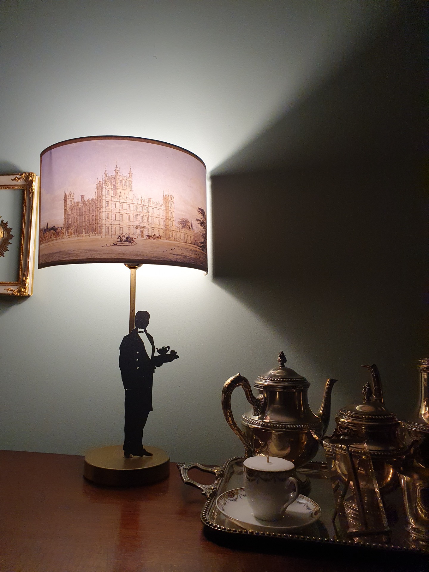 Les pieds de lampe avec silhouettes correspondantes en bois découpés à la main, sont réalisés par moi-même.