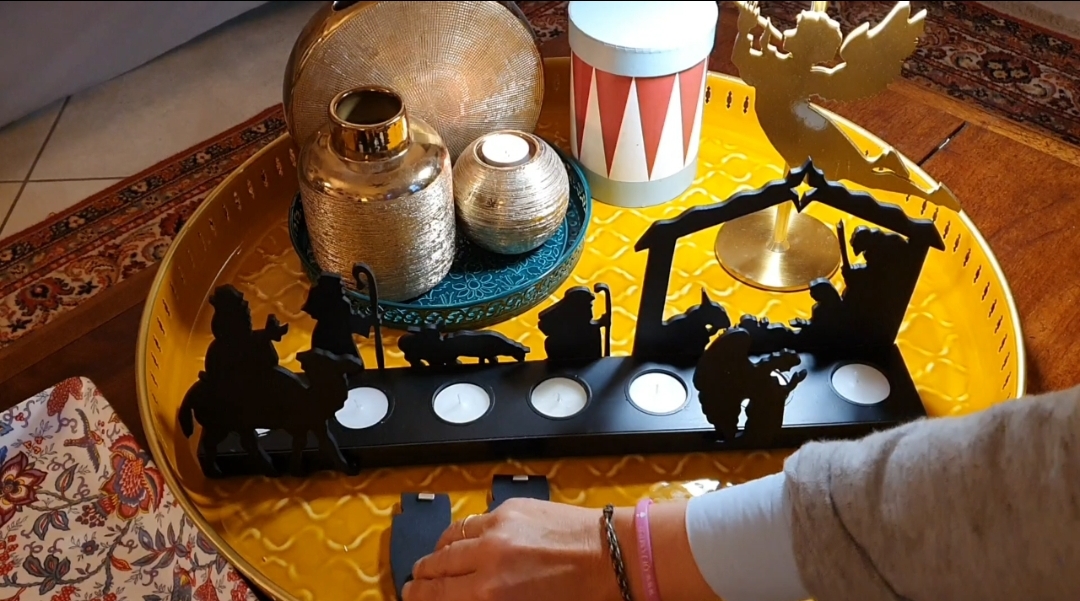 Base et silhouettes en bois de couleur noir.Les silhouettes sont aimantées, elles peuvent être disposées au gré de vos envies et peuvent être ainsi rangées facilement après la période de Noël.
