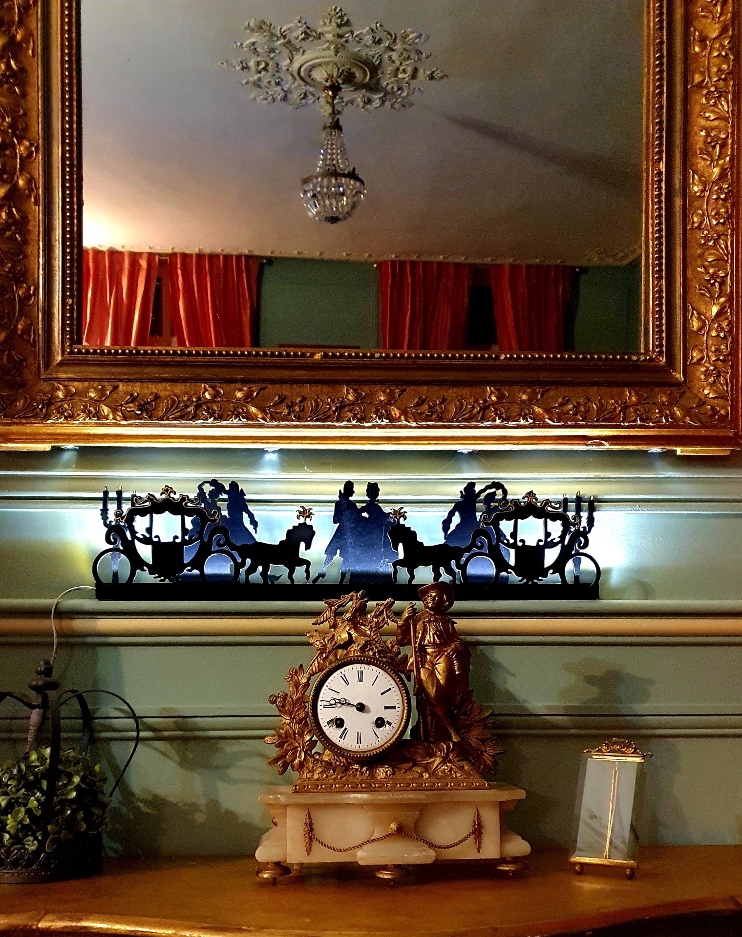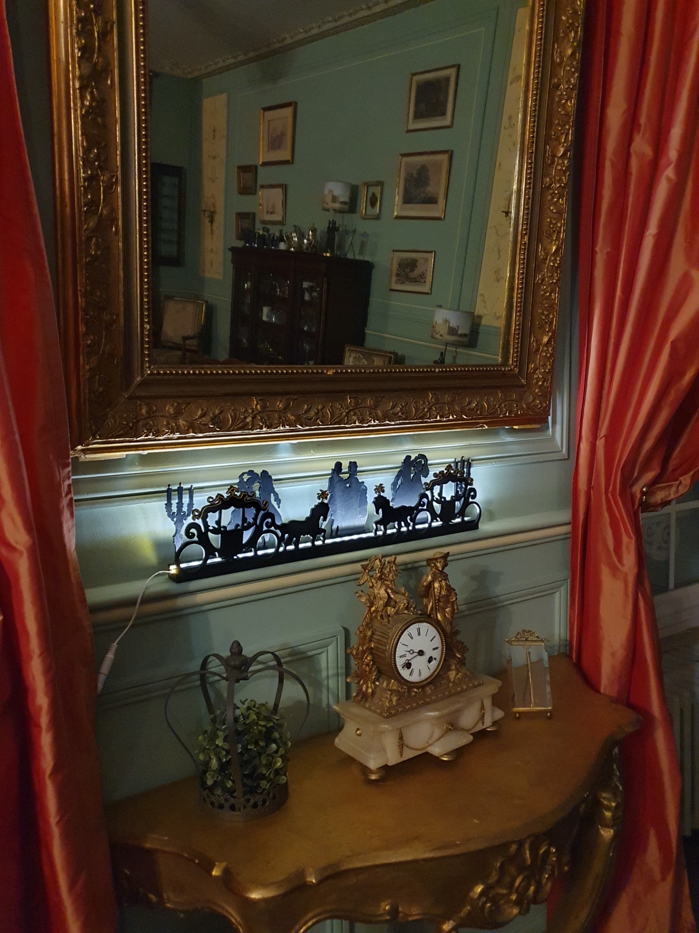 photophore en bois 55 cm modèle électrique à brancher sur secteur. Ruban led 12v avec interrupteur. Photophore et silhouettes sont à coller ( colle fournie)
